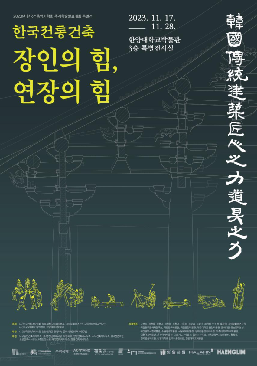 문화재청 국립문화재연구원 국립완주문화재연구소와 궁능유적본부는 오는 11월 17일부터 11월 28일까지 한양대학교 박물관(서울 성동구)에서 (사)한국건축역사학회·(사)한국문화재기능인협회·한양대학교 박물관과 함께 「한국전통건축 : 장인의 힘, 연장의 힘」 특별전을 공동으로 개최한다.