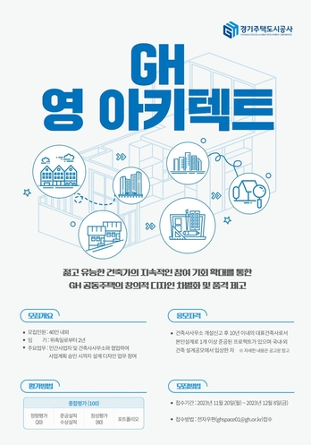 김세용 GH 사장은 "젊고 유능한 건축가의 기회 확대를 통해 GH 공동주택 창의적 디자인을 선도하고자 한다. 경기도 공동주택의 품격 제고에 기여할 'GH 영 아키텍트' 공모에 큰 관심과 참여를 부탁드린다"고 말했다.