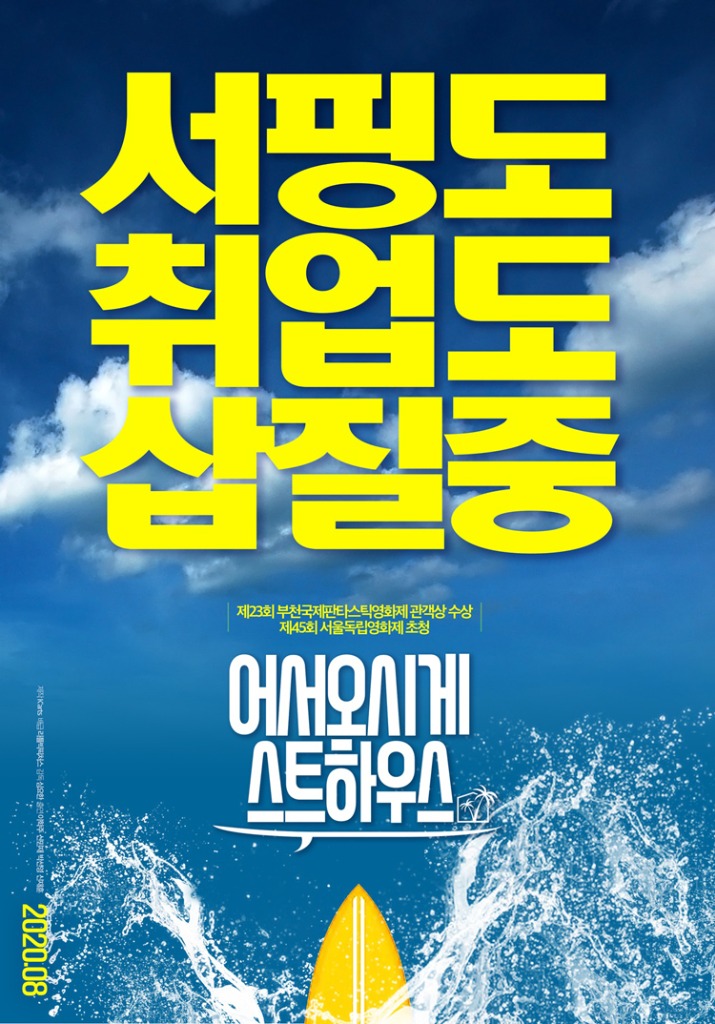 개봉 소식과 함께 공개된 티저 포스터는 “서핑도, 취업도 삽질중”이라는 현실적이면서도 웃픈 카피로 스토리에 대한 궁금증을 불러 모으며 단박에 시선을 집중시키고, 서핑 보드에 의해 시원하게 부서지는 파도 파편은 뜨거운 무더위를 날려줄 시원함을 선사하며 영화가 보여줄 통쾌하고 쿨한 매력을 더해주고 있다.