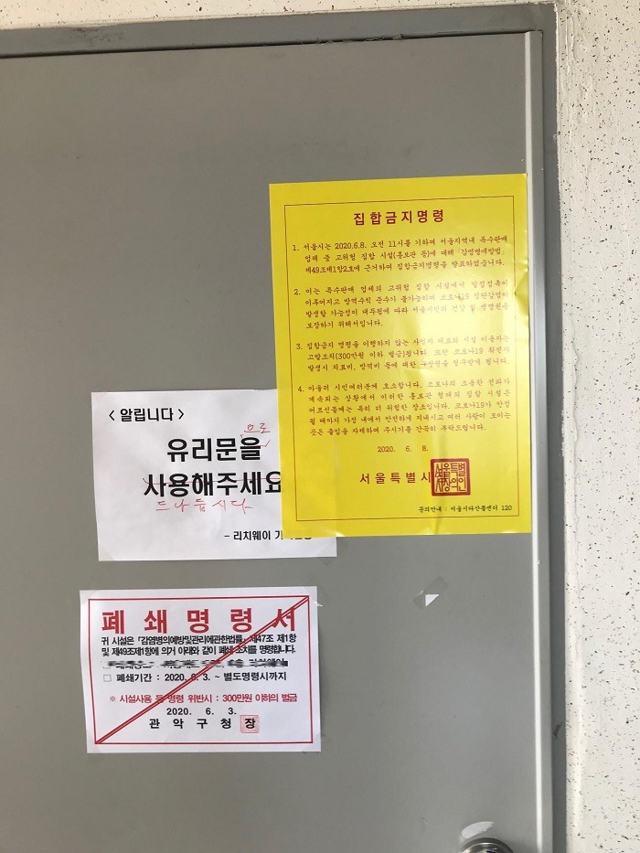 서울시는 집합금지명령에도 불구하고 리치00가 영업을 재개하고 교육장에서 불법적인 모임을 하고 있는 것을 확인, 7월 6일(월) 16시 관악경찰서와 합동으로 즉각 사업장으로 출동해 ‘집합금지명령 위반 확인서’를 징구했다고 밝혔다.