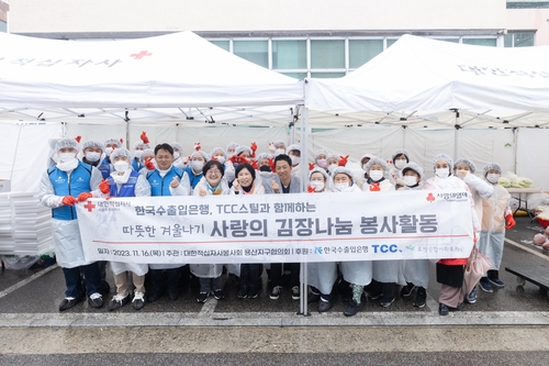 한국수출입은행(www.koreaexim.go.kr, 이하 '수은')은 지난 16일 김장철을 맞아 효창종합사회복지관에서 고객기업인 TCC스틸(이하 'TCC')과 함께하는 김장나누기 봉사활동을 실시했다고 밝혔다.