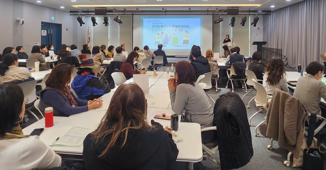 이번 워크숍은 도내 환경교육 관계자들이 집단지성의 힘으로 ‘경기도 환경교육의 철학적 방향 모색하기’라는 부재 하에 학교 교원, 장학사, 환경교육 담당 시군 공무원, 사회환경 교육기관 종사자, 지속가능발전협의회 위원, 환경교육 활동가 등 70여 명의 환경교육 관계자가 함께했다.