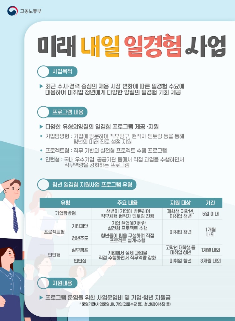 고용노동부와 대한상공회의소는 11월 20일(월) 「2023 미래내일 일경험사업 우수사례 공모전」을 통해 선정된 총 51점의 우수사례를 발표하였다.
