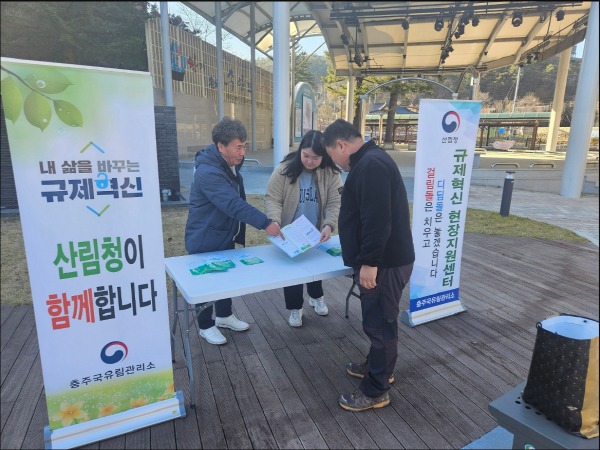 충주국유림관리소는 11월 20일 충주시 수안보면 미륵리 90-1 일원에서 등산객 및 지역 주민을 대상으로 '규제혁신 현장지원신테' 를 운영했다.