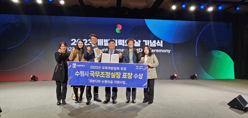 수원시가 21일 서울 더플라자 호텔에서 열린 '2023 개발협력의 날 기념식'에서 '2023 국제개발협력 유공 국무조정실장' 기관 표창을 받았다.