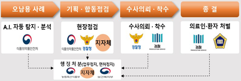 의심사례 등은 식약처 중심으로 검·경, 복지, 지자체 등이 함께 매월 범부처 기획·합동점검을 진행한다.