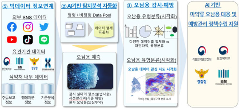 한편, 마약류통합관리시스템 내 처방·투약내역을 수동으로 분석해 오남용 사례를 추출했으나, 앞으로 인공지능(AI) 지능화를 통해 자동 탐지·분석과 위반사례 추출을 추진한다.