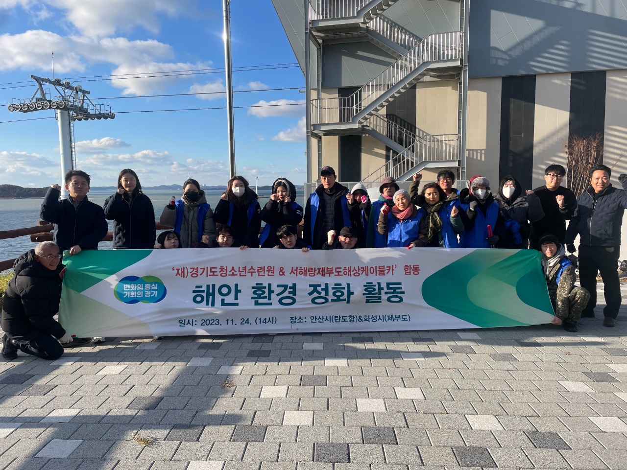 경기도청소년수련원이 24일 서해랑 제부도해상케이블카와 함께 안산 탄도항, 제부도 일대에서 환경 정화 봉사 활동을 실시했다.