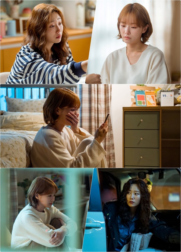그런 해나 곁을 든든히 지키던 유나는 전 남친 오상수(이승준 분)로 인해 해나가 이런 상황에 놓인 것이라고 자책한다. 오직 동생 해나를 향한 걱정뿐인 언니 유나는 얼마나 눈물을 흘린 것인지 눈이 퉁퉁 부어 있다. 그녀의 울먹이는 눈에서 슬픔 정도가 고스란히 느껴진다.
