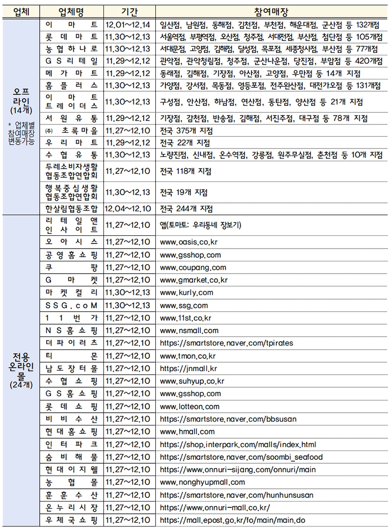 온라인, 11월 27일~12월 10일까지…오프라인, 11월 30일~12월 13일까지