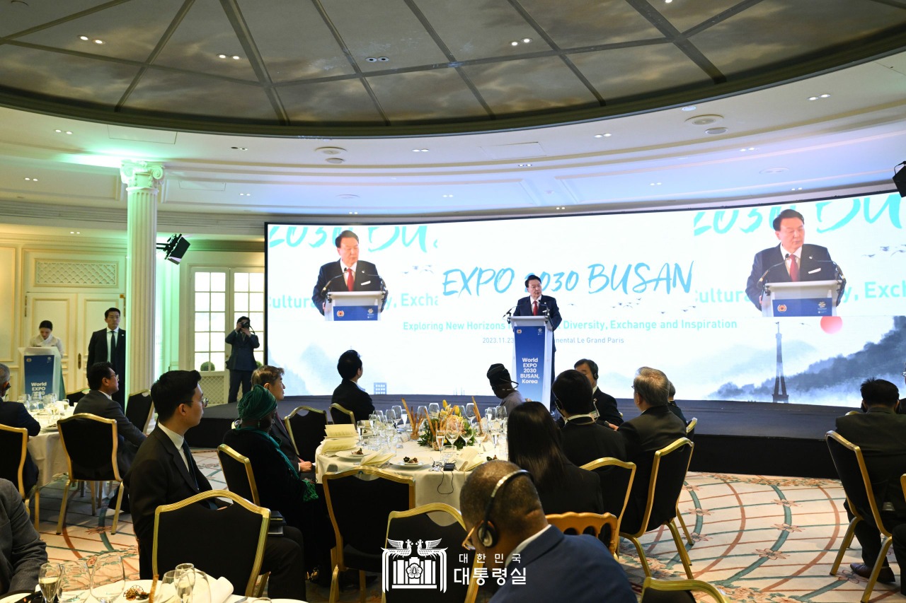 또 파리 브롱냐르궁에서 열린 국경일 리셉션에 참석해 2030 부산엑스포 유치 성공을 위한 강력한 의지를 표명했다.