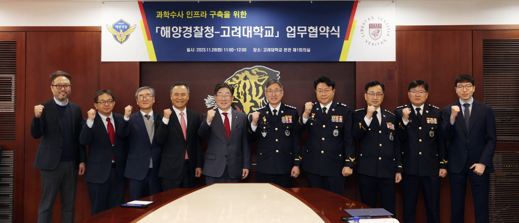 해양경찰청과 고려대학교는 오늘 오전 고려대학교 본관 1층 회의실에서‘해양과학 수사역량 강화 및 인프라 구축을 위해’ 업무협약(MOU)을 체결했다.”고 28일 밝혔다.