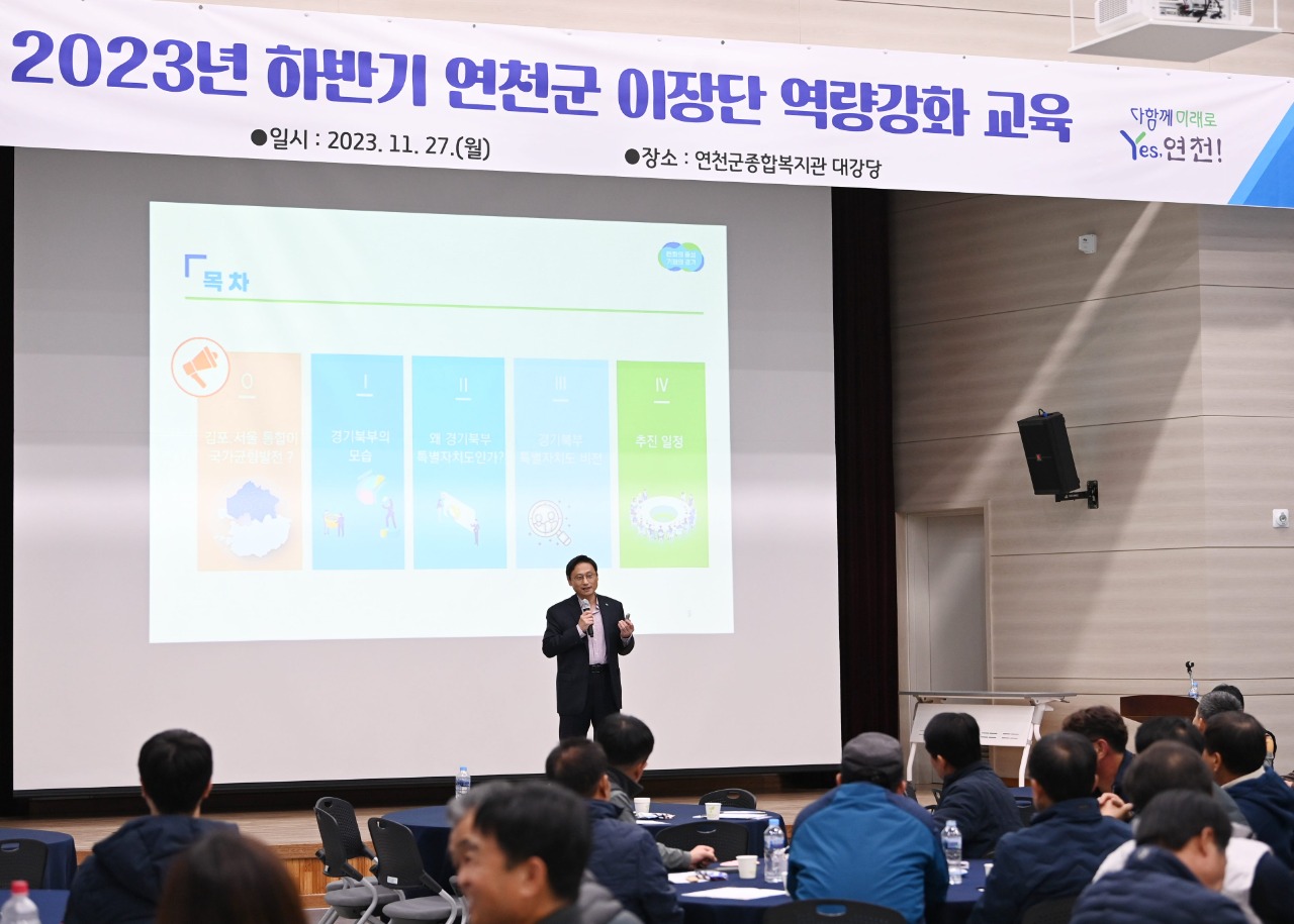 지난 27일 연천군 종합복지관 대강당에서 진행된 ‘2023년 하반기 연천군 이장단 역량강화 교육’과 연계하여 추진된 이번 설명회에는 김덕현 연천군수, 심상금 연천군의회 의장, 임달수 연천군 이장협의회장, 연천군 이장단 등 100여 명이 참여한 가운데 오후석 경기도 행정2부지사의 특강으로 진행됐다.