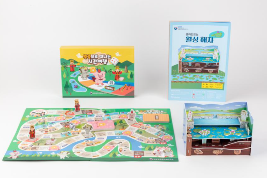 체험학습 교구인 ‘월성으로 떠나는 시간여행’ 보드게임은 주사위에 나온 숫자대로 말을 이동시키면서 바닥판에 적힌 월성 유적에 대한 해설을 읽고 이해하는 놀이이다. 유물카드, 행운의 카드를 획득해 월성 출토 유물을 한층 더 이해하고 발굴조사 연구원의 역할을 간접 체험해볼 수 있으며, 발굴조사 도구를 더 깊이 알 수 있도록 구성되었다.