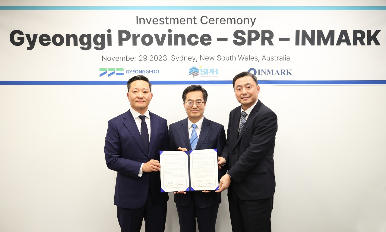 김동연 지사는 29일 호주 시드니의 코트라(KOTRA‧대한무역투자진흥공사) 사무실에서 존 지(John Jee) 인마크글로벌(INMARK Global) 상무, 최흥용 에스피알(SPR) 부사장과 LNG냉열을 활용한 친환경 고순도 플라스틱 재생원료 제조시설 건립을 위한 투자의향서(Letter of Intent) 행사를 개최했다.