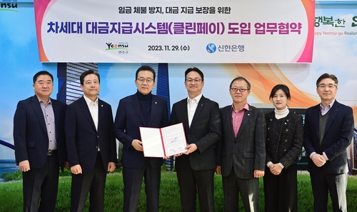 연수구는 29일 구청 소회의실에서 건설공사 하도급 대금을 투명하게 지급하고 대금 체불을 방지하기 위해 신한은행과 '차세대 클린페이' 도입 업무협약을 체결했다.