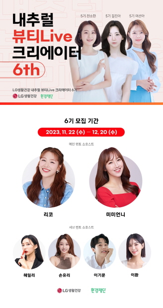 LG생활건강이 ‘라이브커머스 전문가’로 새로운 삶을 꿈꾸는 경력보유여성 등을 뷰티 인플루언서로 육성하기 위한 교육 프로그램인 ‘내추럴 뷰티Live 크리에이터’(이하 내뷰크) 6기를 모집한다.