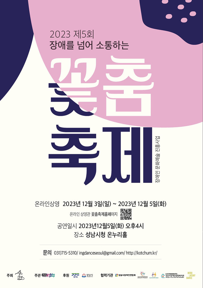 성남시는 ‘제5회 장애를 넘어 소통하는 꽃춤축제’가 오는 12월 5일 오후 4시~6시 시청 온누리 무대에서 열린다.