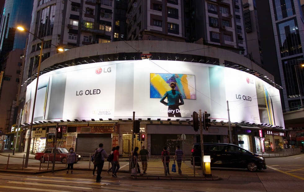 LG전자가 홍콩 최대 번화가 '코즈웨이베이(Causeway Bay)'에 LG 올레드 TV 대형 옥외광고를 선보였다.