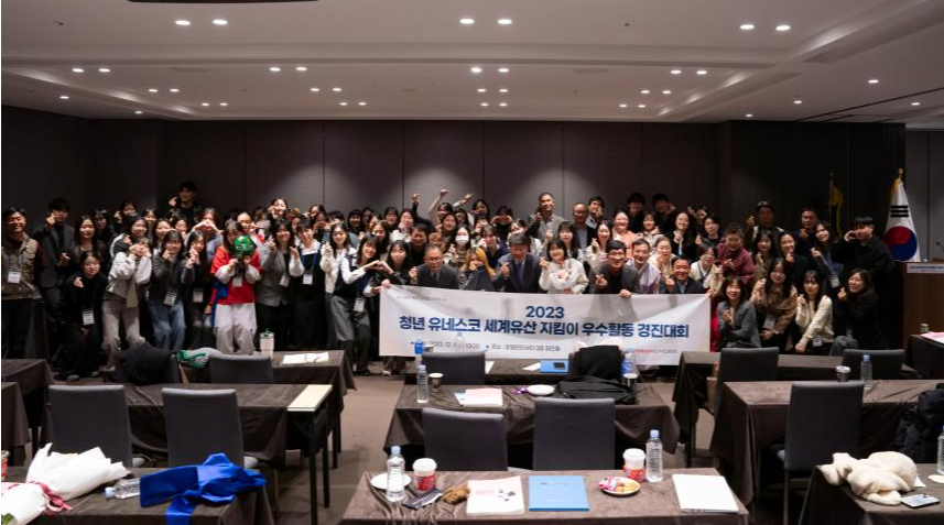 문화재청은 (사)한국문화재지킴이단체연합회와 12월 1일 오후 1시 대전 호텔인터시티에서 ‘2023 청년 유네스코 세계유산 지킴이 우수활동 경진대회’를 개최했다.