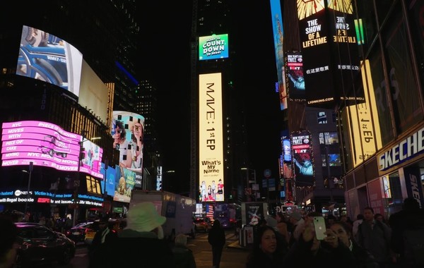 MAVE: (메이브, 시우·제나·타이라·마티)는 첫 번째 EP 앨범 'What's My Name'(왓츠 마이 네임) 발매 당일인 지난달 30일 미국 뉴욕에 위치한 타임스퀘어 전광판을 장식했다.