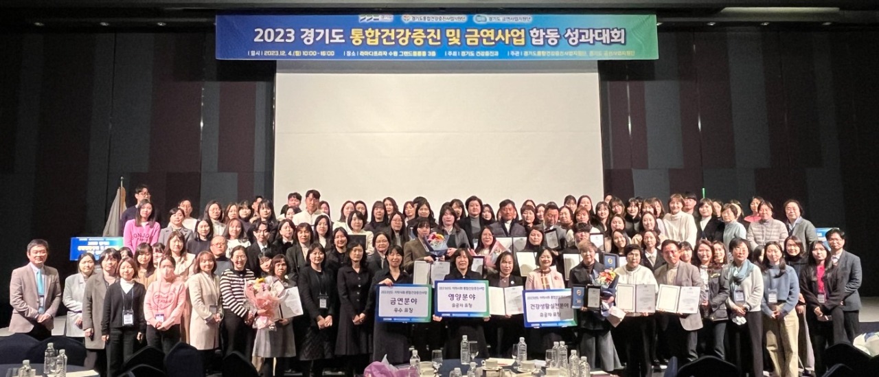 경기도는 4일 라마다프라자 수원에서 시군 보건소 담당 공무원과 전문인력, 경기도 통합건강증진사업지원단과 금연사업지원단 등 200여 명이 참석한 가운데 ‘2023년 통합건강증진․금연사업 합동 성과대회’를 개최했다.