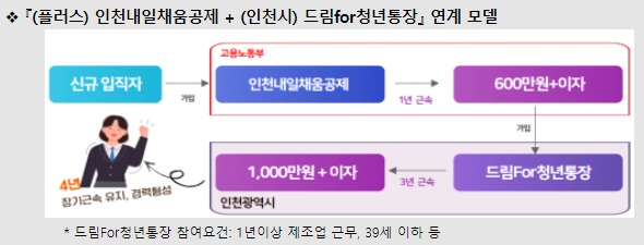 인천시는 「플러스사업」을 통해 뿌리산업 맞춤형 공제사업을 운영하면서, 이를 인천시 자체 사업인 「드림For청년통장」 사업과 연계하여 뿌리산업 재직자에게 최대 4년간의 장기근속을 유도하는 등 중앙-지방 사업간 연계를 통해 구인난 해소 효과를 높이는 새로운 모델을 제시했다.