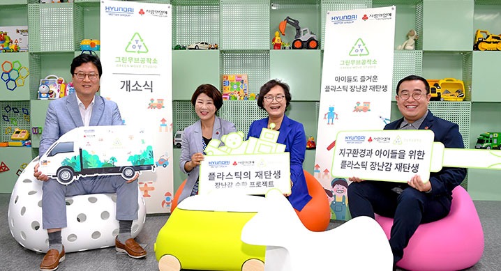 현대자동차그룹은 14일 경기도 안양시 소재 현대자동차 안양사옥 4층에 마련된 사회적협동조합 ‘그린무브공작소’ 개소식에 참석해 폐 플라스틱 장난감 순환 지원 사업을 추진한다고 밝혔다.
