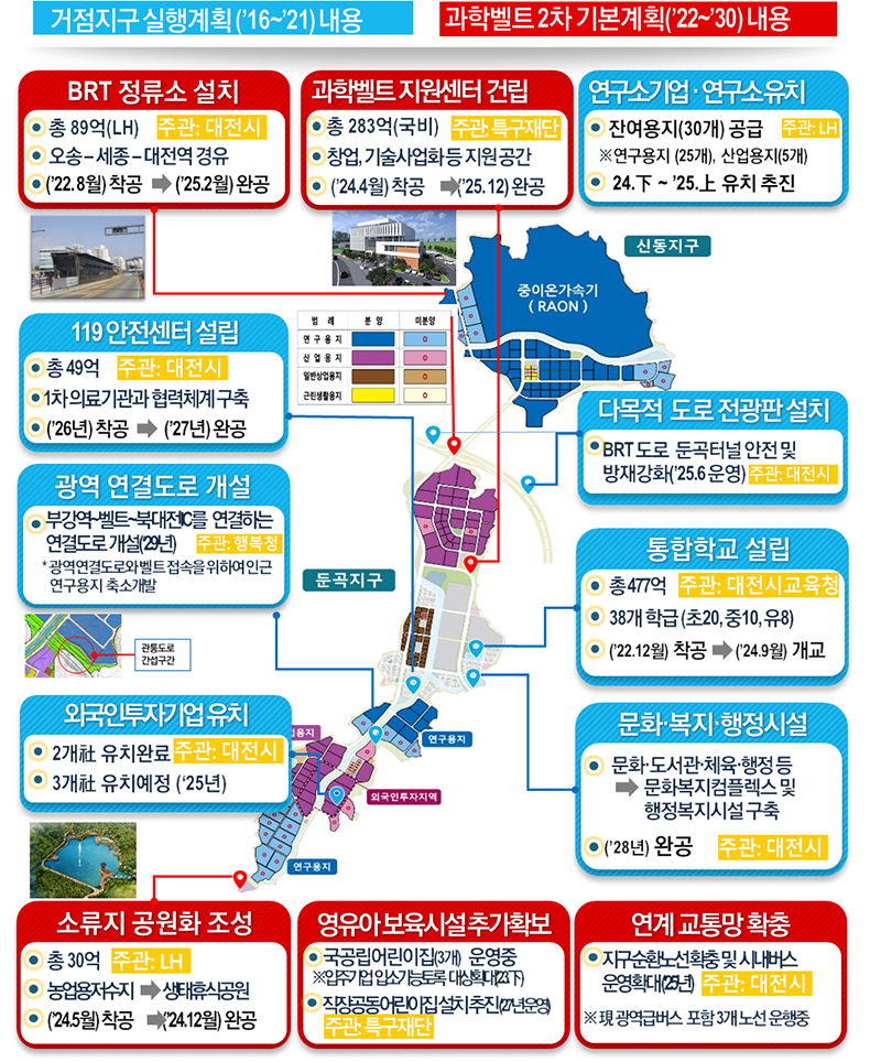 내년 말까지 과학벨트 외곽의 저수지를 기존 수변 산책길과 연계해 생태휴식공간으로 조성하고, 문화복지컴플렉스 및 119 안전센터 등 주민편익을 위한 공공 시설물 건립계획도 내년까지 수립한다.