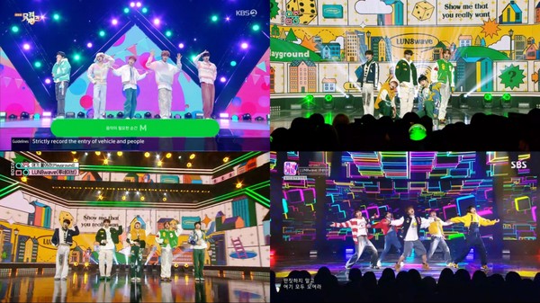지상파 음악 방송 활동을 성공적으로 마무리한 루네이브는 계속해서 다양한 방식으로 팬들과 만남을 이어갈 예정이다.[사진 = KBS 2TV ‘뮤직뱅크’, MBC ‘쇼! 음악중심’, SBS ‘인기가요’ 방송 캡처]