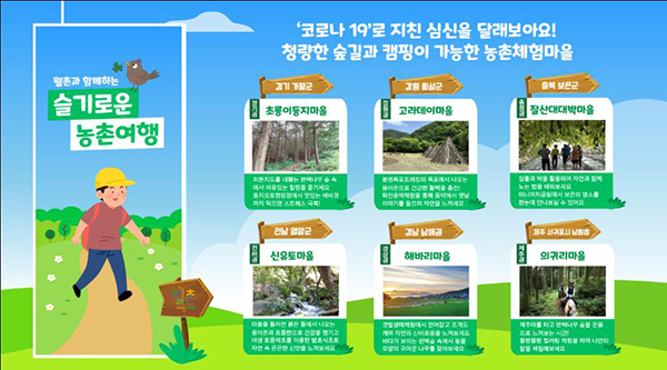 농림축산식품부와 한국농어촌공사는 코로나19로 지친 심신을 달래고 힐링하기 좋은 ‘농촌체험휴양마을’ 6곳을 13일 선정·발표했다.