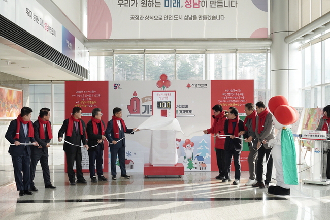 성남시는 어려운 이웃 돕기 위한 성금 모금 캠페인의 하나로 12 월 5 일 오전 10 시 시청 1 층 로비에서 ‘ 사랑의 온도탑 제막식 ’ 을 했다 .