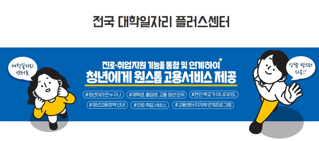 2015년 시범사업인 대학일자리센터에서 시작한 대학일자리플러스센터는 재학단계 청년에 특화된 진로취업지원서비스 제공을 통해 청년의 노동시장 진입을 촉진하는 역할을 하고 있다. 2022년부터는 이용 대상을 졸업생 및 지역 청년까지 확대하고, 지역 실정에 맞는 거점형 특화 취업프로그램을 운영함으로써 청년들에게 실질적 취업지원을 제공하고 있다.