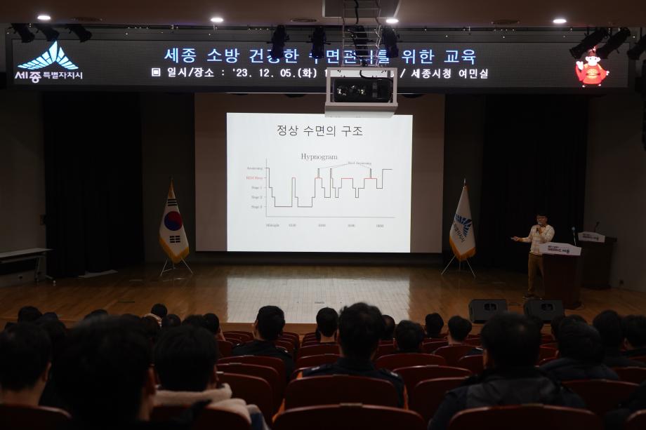 세종소방본부가 지난 5, 6일 이틀간 시청 여민실에서 이비인후과 전문의(소리숨이비인후과 이대웅 원장)를 초빙해 소방공무원을 대상으로 수면장애 개선을 위한 특별 교육을 진행했다.