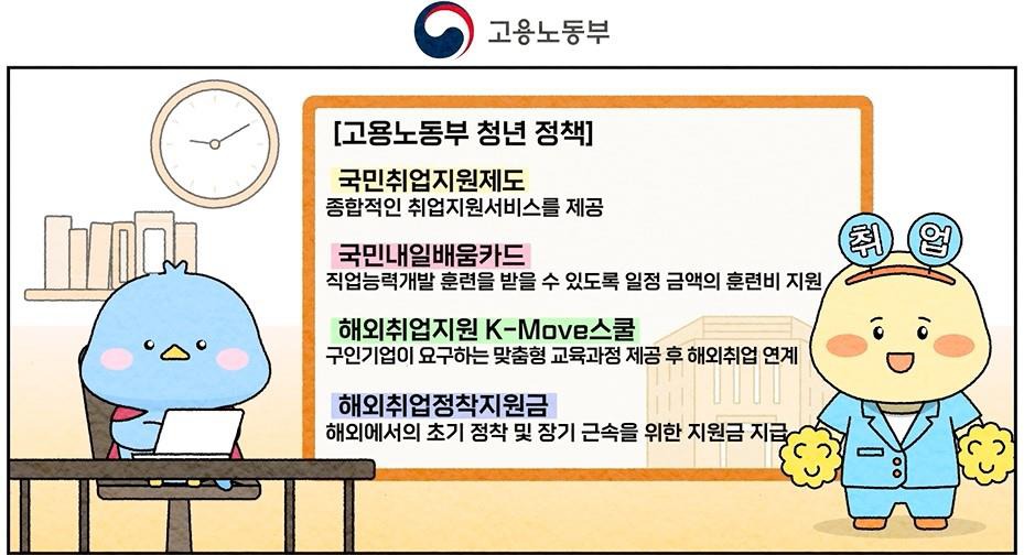 의견수렴을 통한 개선활동에 이어 이번에는 애니메이션 형식의 동영상을 제작하여 청년정책 홍보에 나선다. 영상에는 고용노동부(국민취업지원제도, 국민내일배움카드), 국방부(장병내일적금, 자기개발비용지원), 문화체육관광부(문화누리카드, 예술인창작준비지원금) 등 정부부처 및 산하기관에서 시행하는 일자리·주거·교육·문화복지·참여권리 정책이 알기 쉽게 담겨있다.