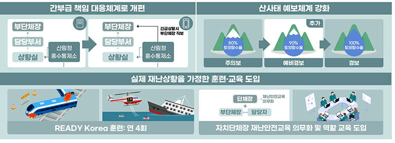 또한 산사태 예·경보 체계도 2단계에서 3단계로 개선해 ‘예비경보’ 단계를 신설해 주민 등이 대피할 충분한 시간을 확보할 수 있도록 한다.