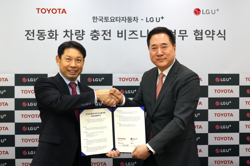 LG유플러스는 한국토요타자동차와 함께 멤버십 서비스 개발, 충전기 설치 등 국내 전기차 충전 인프라 확대를 위한 업무협약(MOU)을 체결했다고 11일 밝혔다.