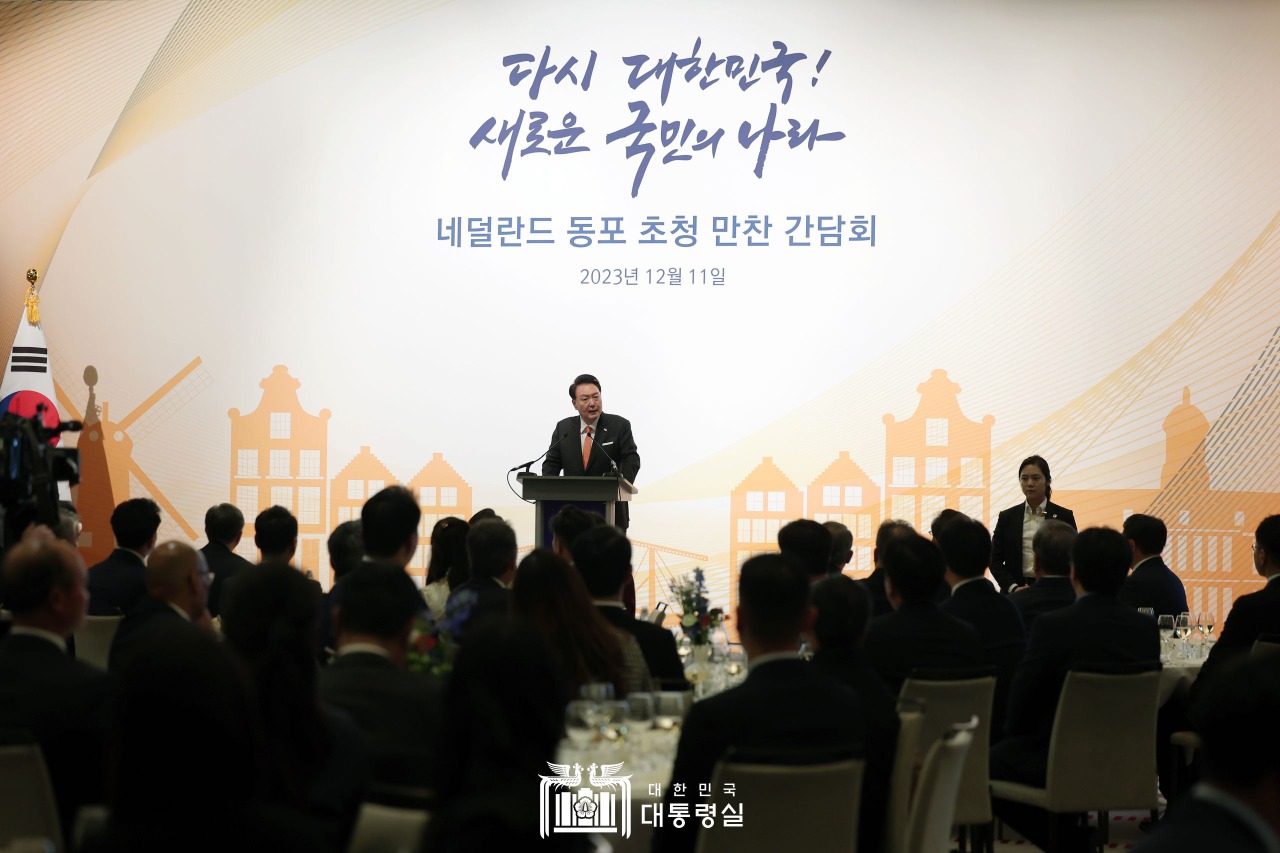 윤 대통령은 “한국과 네덜란드의 관계가 이렇게 긴밀해진 것은 우리 네덜란드의 동포 여러분들의 역할이 매우 크고 중요했다”고 언급했다.
