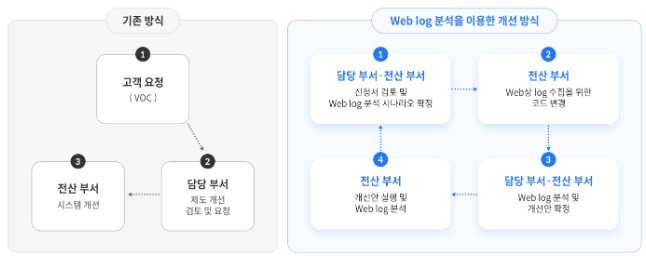 기존 온라인 서비스 개선 방식은 이용자 설문 또는 고객 접점에 있는 직원의 의견을 받아 담당 부서에서 전산 부서에 개선을 요청했던 방식이었다. 이 방식은 단편적인 개선에 국한되고 개선 효과에 대한 환류가 없으며 단발성 개선에 그치는 단점이 있었다.