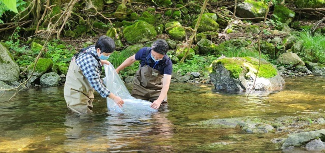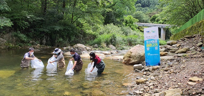 경기도해양수산자원연구소가 올해 생산한 미유기(산메기, 깔딱메기) 1만 마리를 15일 가평군 가평천, 백둔천에 시험 방류했다.
