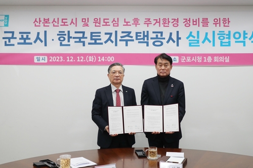 군포시와 한국토지주택공사(LH)은 12월 12일 14시 군포시청에서 산본신도시 및 원도심 노후주거환경 정비를 위한 실시협약을 체결했다.