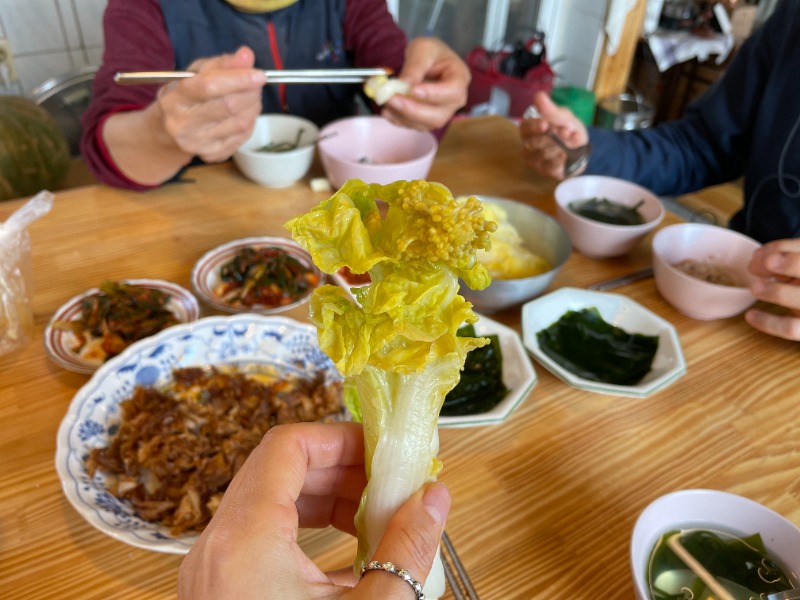 주변에 혼자 사는 할머니들이 많은데 다들 집에서 혼자 밥 먹는 모습이 그렇게 싫어 보였습니다. 그래서 우리 집주인 삼춘이 밭에 일하러 오시면 꼭 점심을 함께 먹곤 합니다. 혼자 귤 창고에 앉아서 쪼그리고 밥 먹는 모습에 제 마음이 불편했거든요. 제가 제주에 살면서 우리 엄마보다도 더 많이 얘기하고 함께 밥 먹는 사람이 있습니다. 바로 우리 집주인 삼춘입니다. 처음 삼춘을 만났을 때 60대 중반이었는데 이제 70대가 되어버린 제주 할망. 제가 ‘키라네 제주 어멍’이라고 부르는 사람. 사실 할머니라고 부르기 참 애매합니다. 할머니라 부르기엔 젊은 것 같고, 젊다고 하기에는 할머니 같은 그 어중간한 지점. 그래서 저는 이모라고 부릅니다. 가끔 정숙 씨라고 부르기도 합니다. 주인 삼춘은 어릴 적 가난했던 시절의 물질하러 갔던 이야기뿐 아니라 제주 사람들의 지혜 같은 이야기도 많이 들려주시곤 합니다. 마치 어릴 적 할머니가 “옛날 옛적에 말이야”라고 이야기하는 것처럼 저는 그런 이야기가 무척이나 재밌습니다.