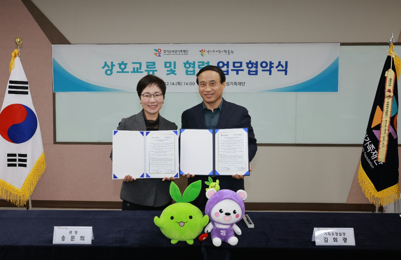 경기도여성가족재단은 14일 재단 회의실에서 경기도어린이박물관과 아동권리 보장과 가족대상 교육 등 상호 교류 및 협력사업 추진을 위한 업무협약을 체결했다.
