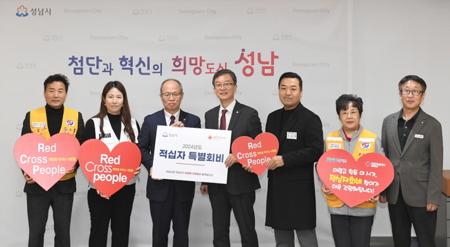 성남시는 12 월 14 일 ‘2024 년도 적십자 특별회비 ’ 300 만원을 대한적십자사 경기도지사에 전달했다.