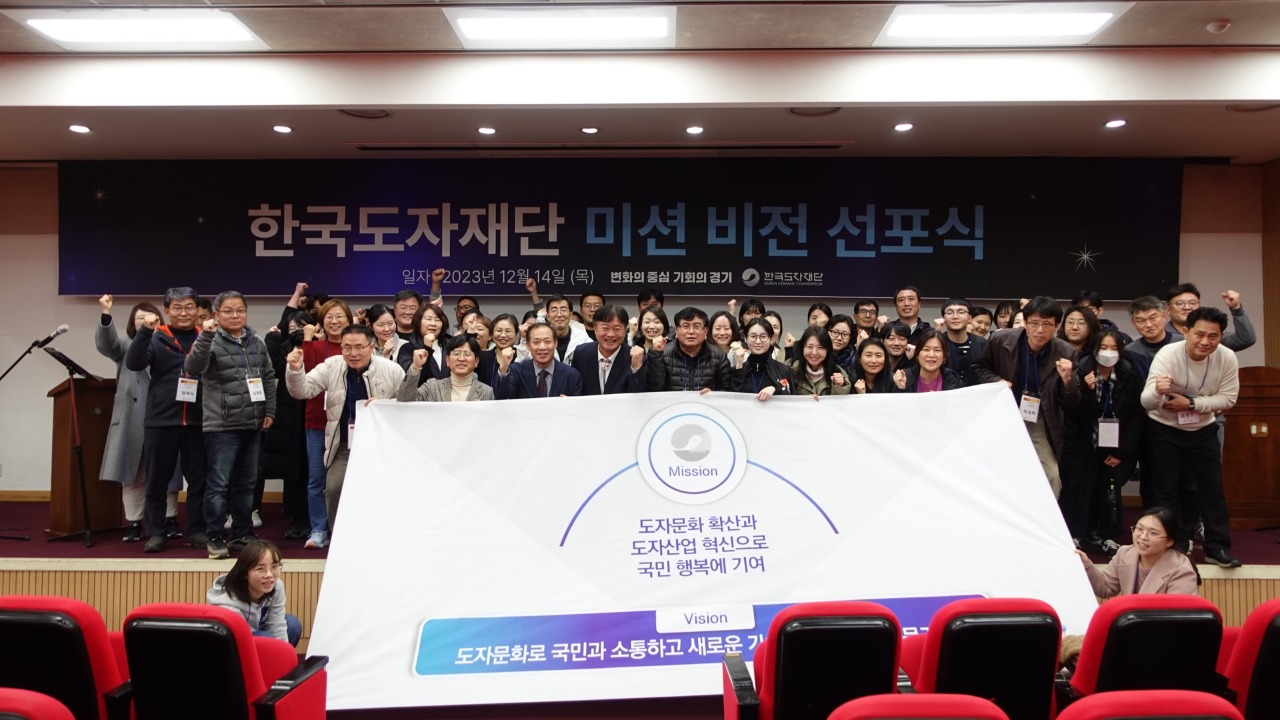 한국도자재단이 14일 양평 코바코연수원에서 ‘비전 선포식’을 열고 새 미션으로 ‘도자문화 확산과 도자산업 혁신으로 국민 행복에 기여’를 설정하고 ‘도자문화로 국민과 소통하고 새로운 가치를 창조하는 전문기관’이라는 새 비전을 공표했다.