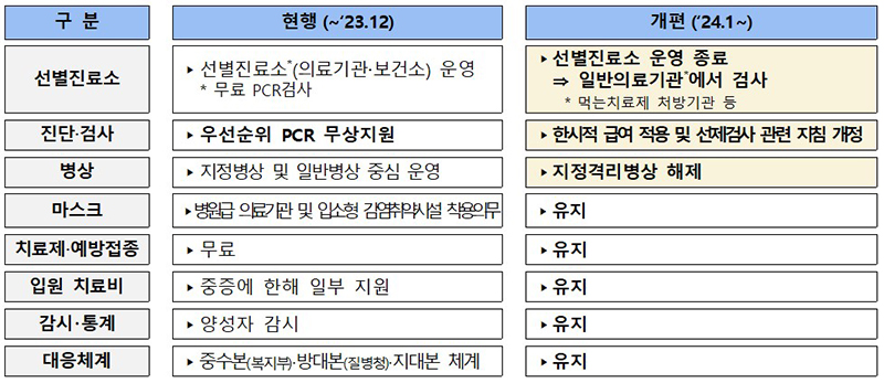 이는 코로나19 주간 신규 양성자가 증감을 반복하고 있고 겨울철 호흡기 감염이 동시 유행되고 있는 상황 등을 고려한 것이다. 또한 고위험군에 대한 지속적인 보호를 위해 진단·검사 및 치료비 등 지원도 지속하기로 했다.