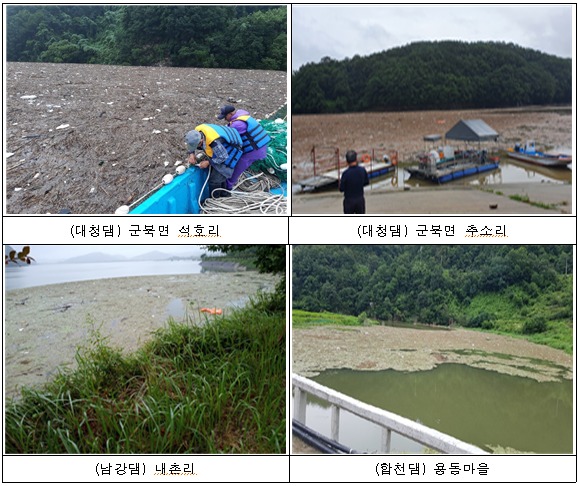 이번 집중호우 기간(7월 12일~15일) 중 전국의 12개 댐에 약 1만 7천 톤(㎥) 가량의 부유 쓰레기가 유입되었으며, 특히 대청댐(1만 1천 톤) 구간에 집중적으로 부유물이 유입되었다.