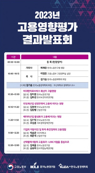 고용노동부는 12월 18일(월) 10:00 루나미엘레(서울 여의도)에서 「고용영향평가 결과발표회」를 개최했다.