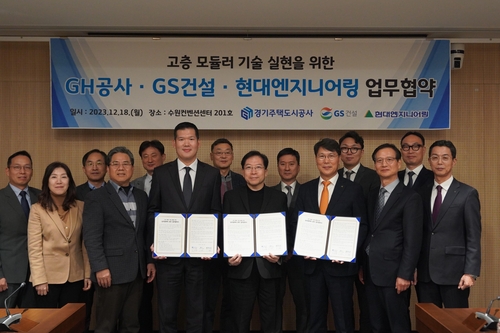 경기주택도시공사(GH)는 18일 경기도 수원 컨벤션센터에서 현대엔지니어링, GS건설과 고층 모듈러 기술 실현을 위한 상호협력 업무협약(MOU)을 체결했다고 밝혔다.