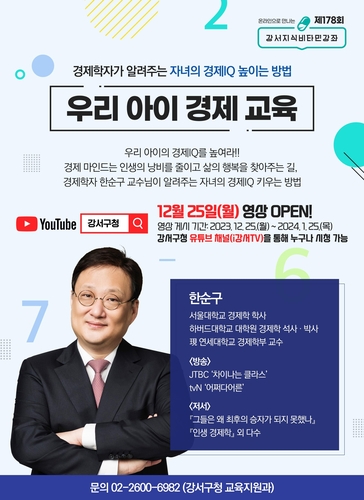 서울 강서구는 우리 아이의 행복한 미래 설계를 위한 경제 원리의 중요성을 전하는 제178회 강서지식비타민강좌 '우리 아이 경제 교육'을 진행한다.